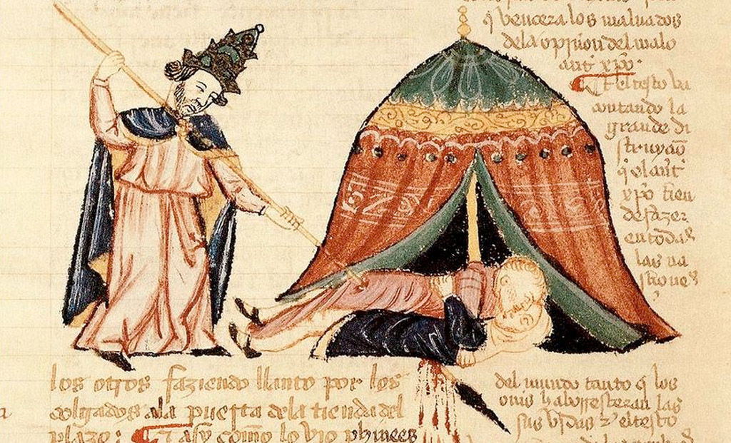 [El documental muestra una pintura de Jeremias van Winghe que ilustra la historia bíblica de Fineas en el momento en que acababa de atravesar con su lanza a Zimri la judia y Cozbi el madianita, ambos desnudos, de acuerdo con la escena que describe el Libro de los Números.]