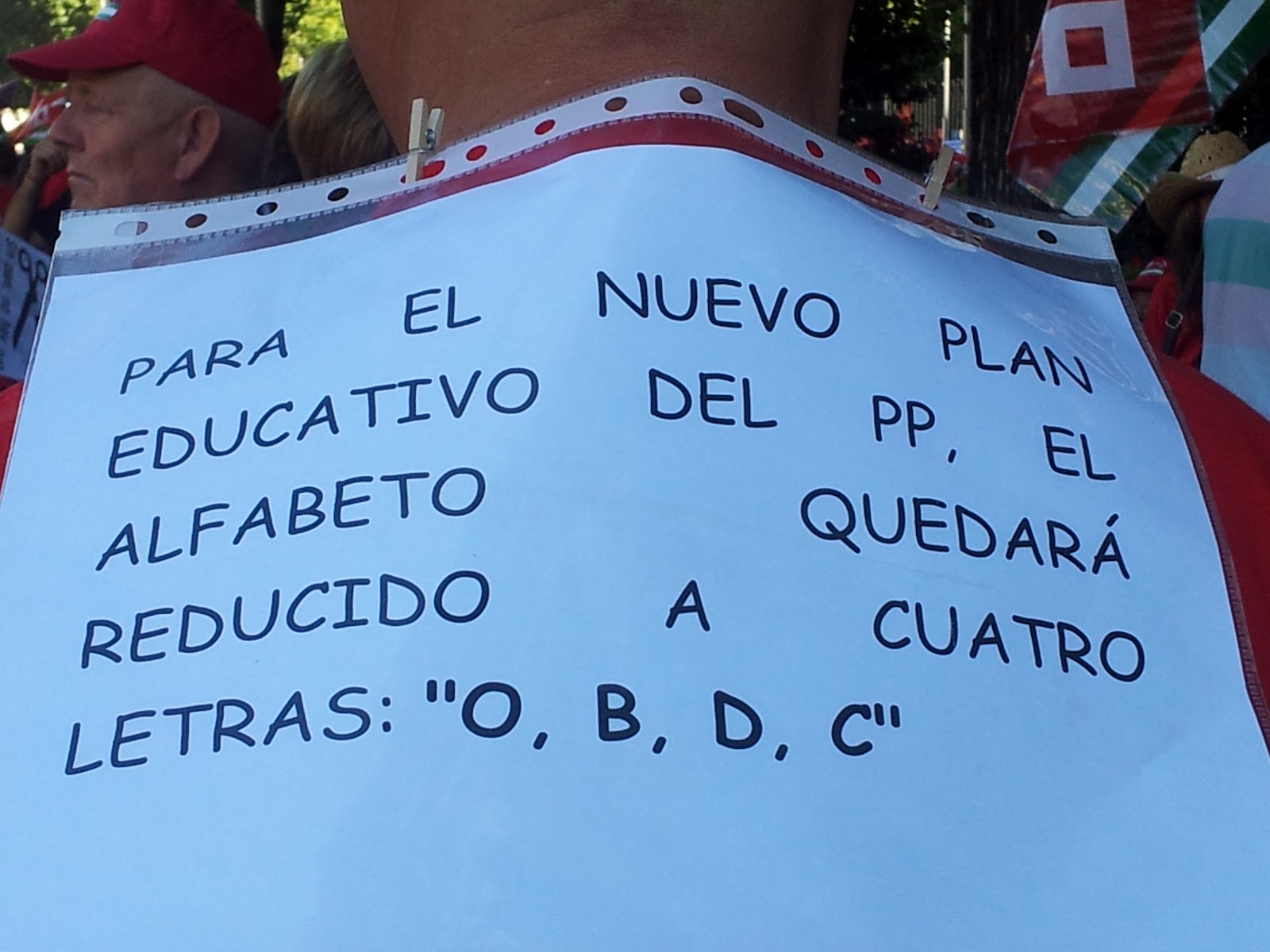 Traduction : Dans le nouveau projet éducatif du PP, l'alphabet s'avérera réduit à trois lettres : "O, B, I".