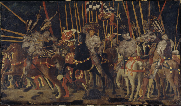 Beaucoup d'œuvres sont en effet disponibles, c'est-à-dire, visibles, comme La contre-attaque décisive de Micheletto Attendolo da Cotignola (circa 1456), le deuxième panneau de La Bataille de San Romano, du peintre Paolo Uccello, qui se trouve au Louvre de Paris.